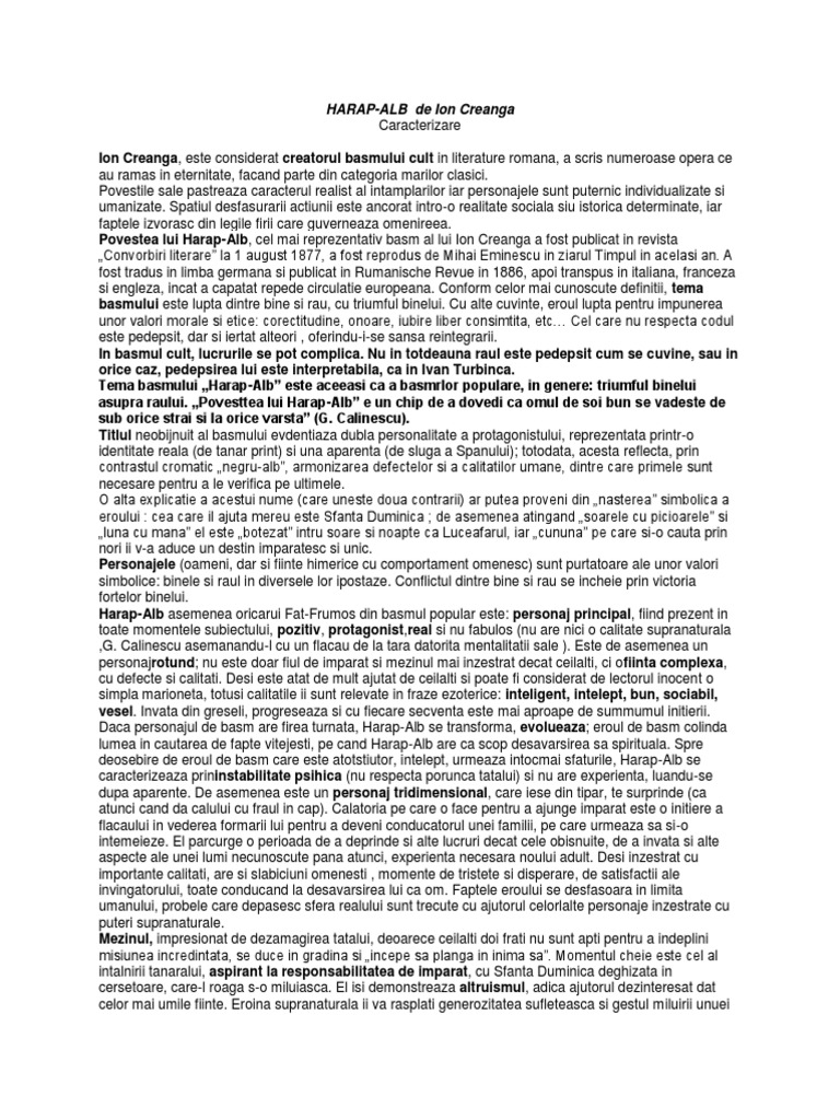 Doc Caracterizare Harap Alb Ana Maria Lepădatu Academia Edu