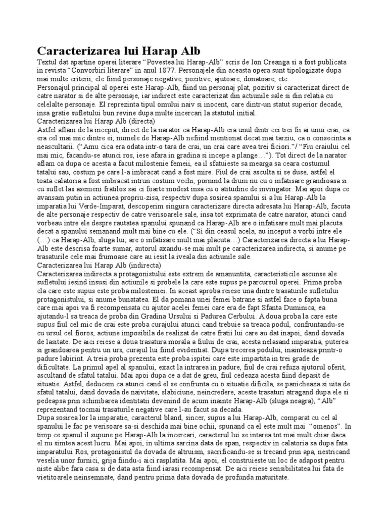 Doc Caracterizare Harap Alb Ana Maria Lepădatu Academia Edu