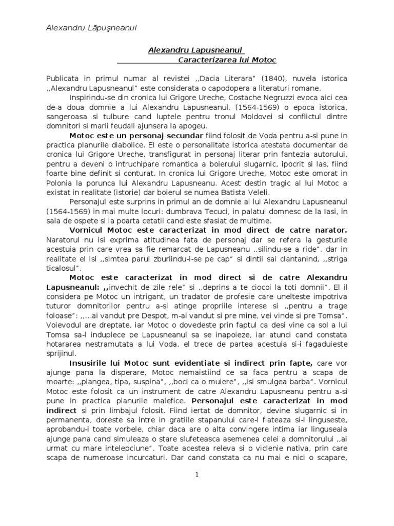 Alexandru Lapusneanul Caracterizare Motoc 2
