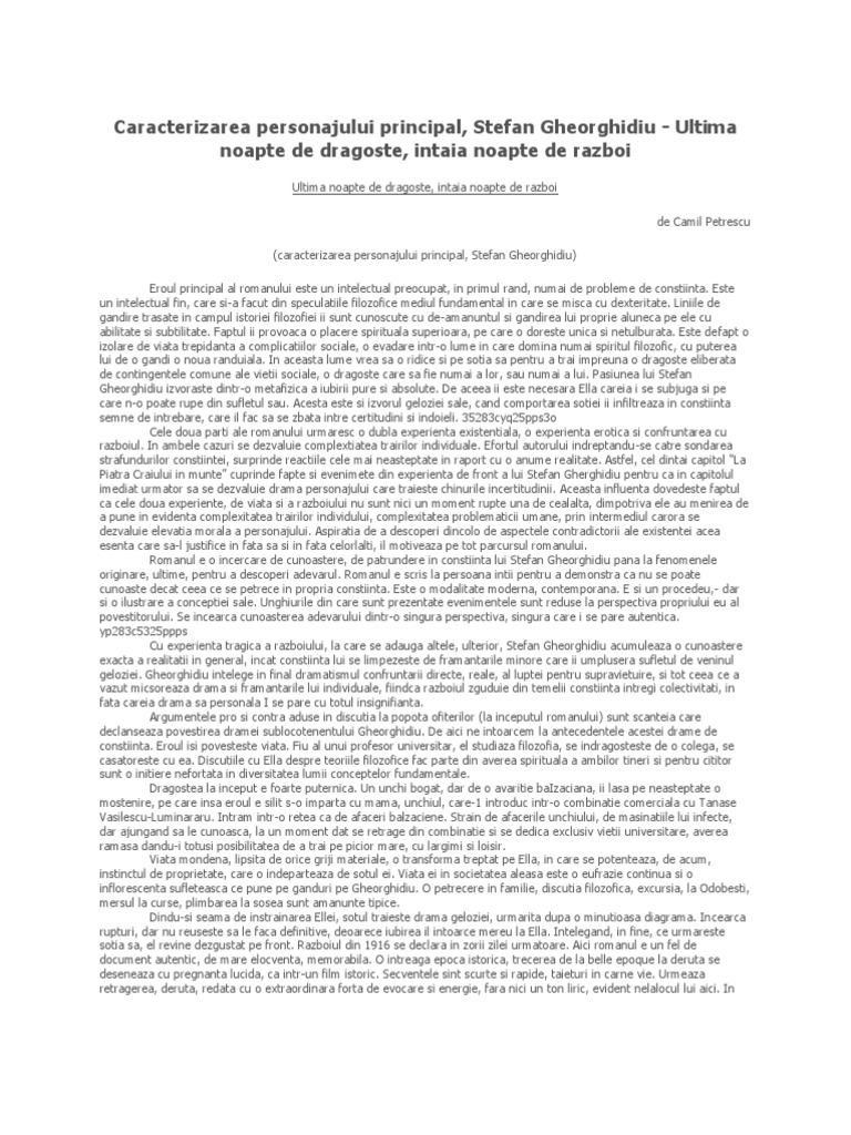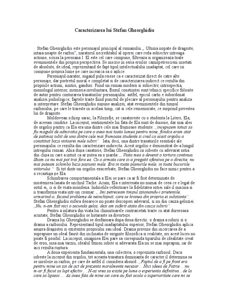 Doc Caracterizare Stefan Gheorghidiu Ultima Noapte De Dragoste Intaia Noapte De Razboi De Camil Petrescu Elena Grigorescu Academia Edu