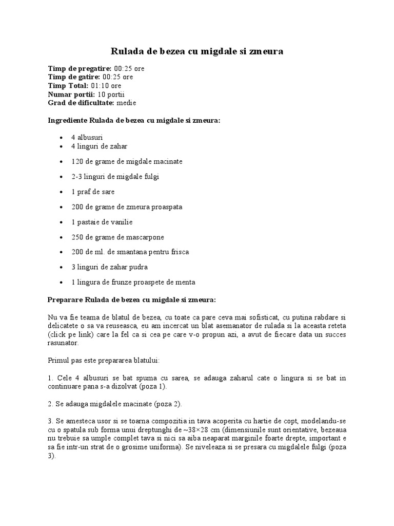 Rulada De Bezea Cu Migdale Si Zmeura